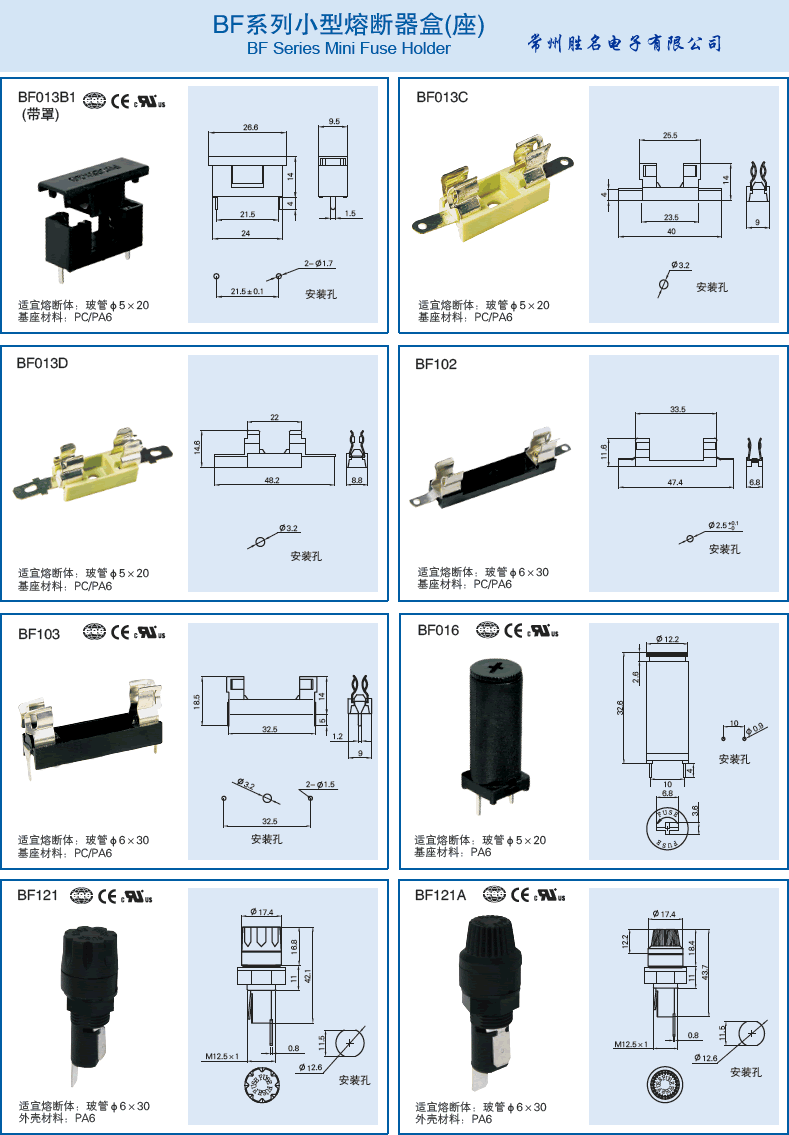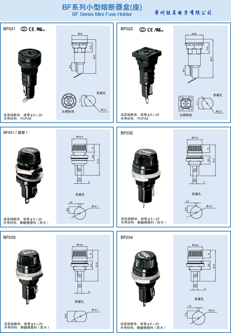 產(chǎn)品簡(jiǎn)介:保險(xiǎn)絲座BF保險(xiǎn)絲盒 面板熔斷器座 面板保險(xiǎn)管座 BF系列小型熔斷器盒 (座) 型號(hào)說(shuō)明-24 BF101 BF002 BF011 BF012 BF012B BF013 BF013A BF013B BF013B1 BF013C BF013D BF102 BF103 BF016 BF121 BF121A BF-014 BF015 BF017/BF017C BF018/BF018B BF019 BF035 BF021 BF022 BF031 BF032 BF033 BF034 BF115 BF119 BF132 BF133 BF134 BF135